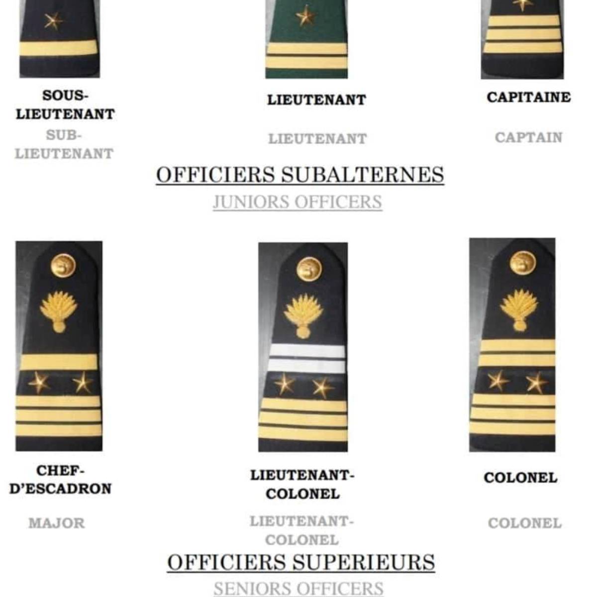 The grades in the Cameroon National Gendarmerie fall into two corps or categories: