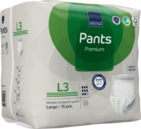ABENA Pants is our Premium range of disposable pants and modern pull-ups that can be worn like normal underwear with absorption levels covering a wide range of needs. The products are made from breathable and super soft material for optimal comfort. The waist band with high number of lycra threads offer a secure and snug fit for the active use.The high performance core with Top-Dry Technology ensures fast absorption and a dry surface even after multiple voids, maintainingskin integrity.