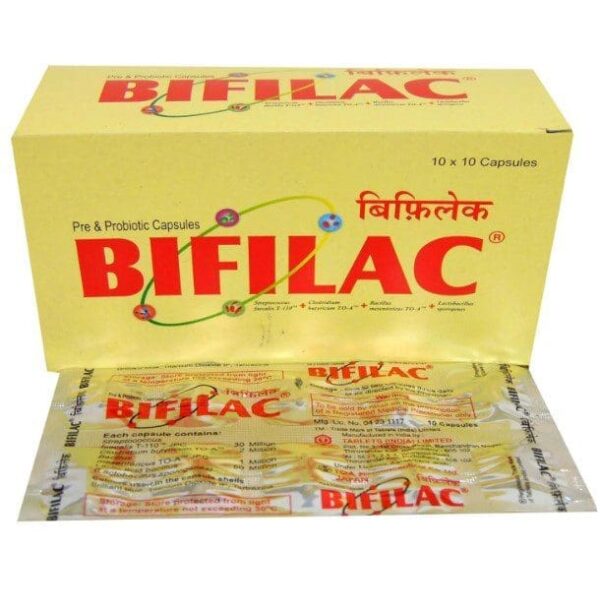 Every human being has millions of microorganisms living inside their gut that plays an important role in keeping your health. They stimulate the immune system. It break down potentially toxic food compounds, and synthesize certain vitamins and amino acids. However, due to certain conditions the normal microbial flora of your gut gets disturbed. It further leads to diarrhoea and malabsorption. Bifilac capsule with its probiotic and prebiotic components helps in restoring the normal bacterial flora of the intestine. This also helps in the management of diarrhoea associated with medicines, improves absorption and digestion. Take is as directed by your doctor. Contains Streptococcus Faecalis(30.0 M),Clostridium Butyricum(2.0 M),Bacillus Mesentericus(1.0 M),Lactobacillus Sporogenes(50.0 M Uses of Bifilac Strip Of 10 Capsules