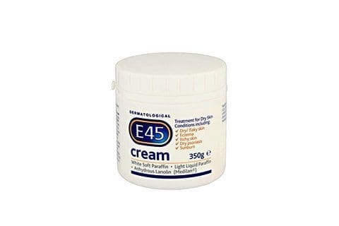 E45 Cream has been clinically proven to treat and soothe dry, flaking, chapped skin, as well as sunburn and detergent hands. E45 Cream’s non-greasy emollient formulation leaves skin soft, comfortable and relieved.The cream is also developed for more serious dry skin conditions such as eczema, dermatitis, ichthyosis and certain dry cases of psoriasis.