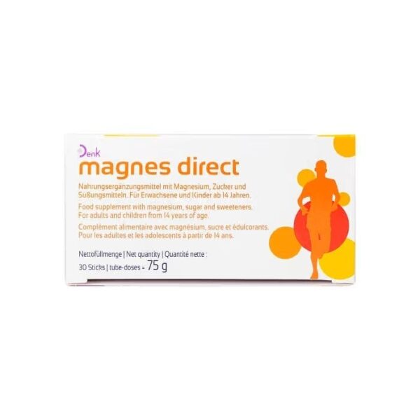 Magnesium is an essential mineral and is involved in many metabolic processes to maintain the energy levels of the body. The need for magnesium particularly increases with increased physical activity: muscle activity increases consumption and the body loses magnesium through perspiration. In order to prevent a deficiency, care should be taken to ensure a sufficient and rapid magnesium intake. magnes direct Denk can easily be consumed on the go and fulfils the increased need for magnesium.