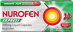 Nurofen Express 200mg Liquid Capsules. Contains Ibuprofen. For pain relief. Always read the label. *Refers to absorption. **Based on 400mg dose. RKT-M-20975.