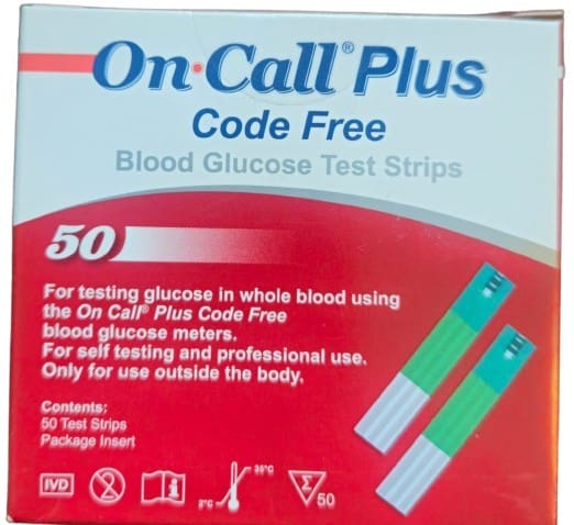 On call plus glucometer strips should be used with Oncall plus glucometer. They are two tins in one box. One tip has 25 strips and the other 25strips.
