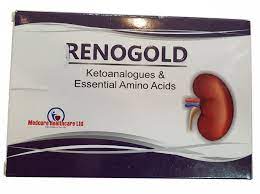 This medicine prevents the unnecessary increase in urea levels in the blood. High urea levels are due to the intake of non-essential amino acids in patients with kidney failure. Renogold tablets follows same catabolic pathways as amino acids. They work by improving the metabolism of protein in the body, thereby improving the renal function. When given as a therapy, it exerts a metabolic benefit to the body.