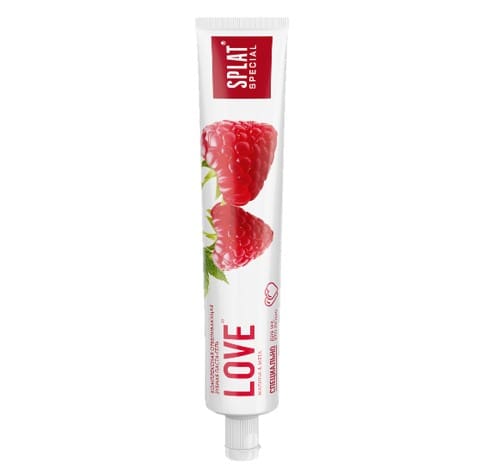 SPLAT Special “Love” Toothpaste-Gel with raspberry aroma — for happy lovers! It freshens breath, gently lightens enamel, and protects against viruses and bacteria. Research shows it has a positive effect on a person’s emotional state.
