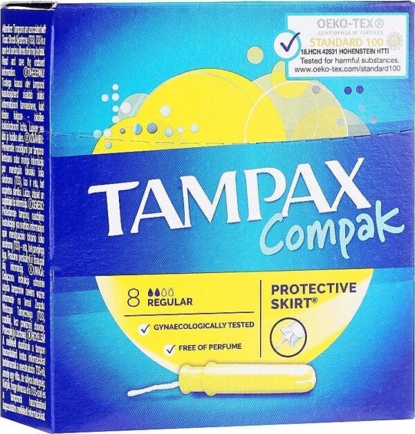 Tampax Compak tampons come with a compact and discreet plastic applicator and a rounded tip for comfortable insertion. With absorption channels to absorb directly to the core and a protective skirt to help prevent leaks for a worry free period. Tampax Compak tampons have been gynaecologically tested. They have also been independently tested for harmful substances by Oeko-Tex. Trusted leak free protection to let you do whatever you like. Tampax Compak’s best tampons for light to medium flow absorbency. Try Tampax Pearl Compak, Tampax’ best option for comfort and protection across Tampax line up.